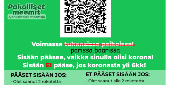 Nyt on koronapassi lähes kaikilla työpaikoilla!